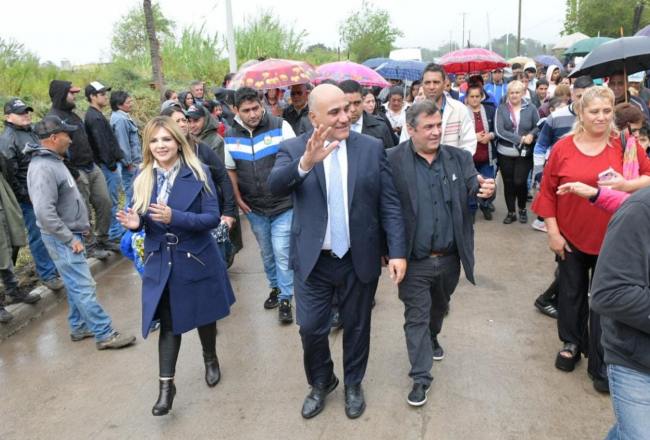 El gobernador, Juan Manzur, junto al intendente de la ciudad de Lules, Carlos Gallia, inauguraron este jueves al mediodía obras de pavimento e iluminación en el barrio Colonia 3, en el sector que va desde la Ruta Provincial 301 hasta el badén, zona por la que se ingresa al Parque Industrial Kanamico.
