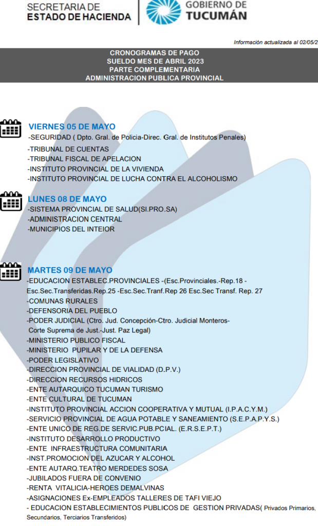 Tesorería de la Provincia de Tucumán informó la fecha de pago de la parte complementaria para los trabajadores de las diferentes Reparticiones.